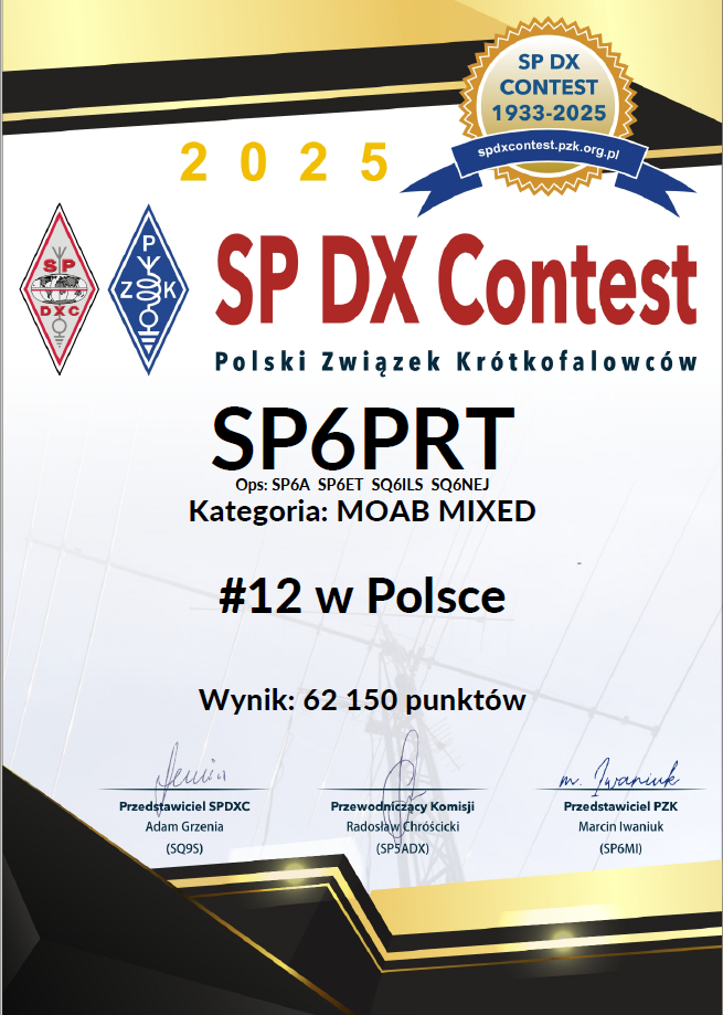 Podsumowanie zawodów 2025 sq6ils 26 kwietnia 2026 26 kwietnia 2026 Możliwość komentowania Podsumowanie zawodów 2025 została wyłączona W zawodach międzynarodowych udało nam się uzyskać następujące miejsca: I nasze dyplomy: